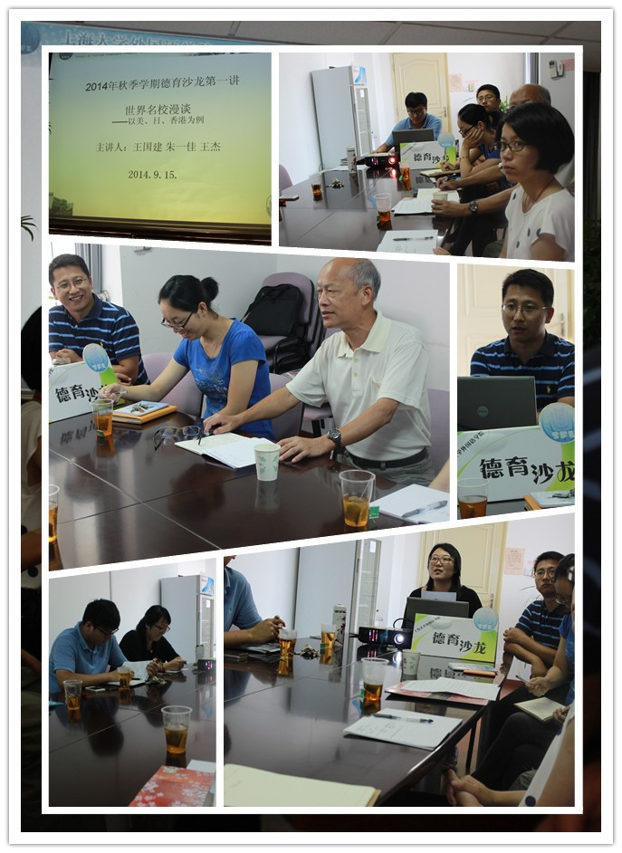 9月15日下午,太阳成集团tyc33455在C302会议室举办的新学期首场题为世界名校漫谈的德育沙龙活动。公司党委副书记王国建、辅导员朱一佳和研究生专职委员王杰分别分享了自己对美、日和香港高等教育的总体印象和感想,以及由此引发的各自对员工工作的思考。外语学院特邀党建组织员安山老师、学院新进教师韩静、谷音以及学院学工办全体老师们都参加了此次沙龙活动。活动由袁蓉老师主持。