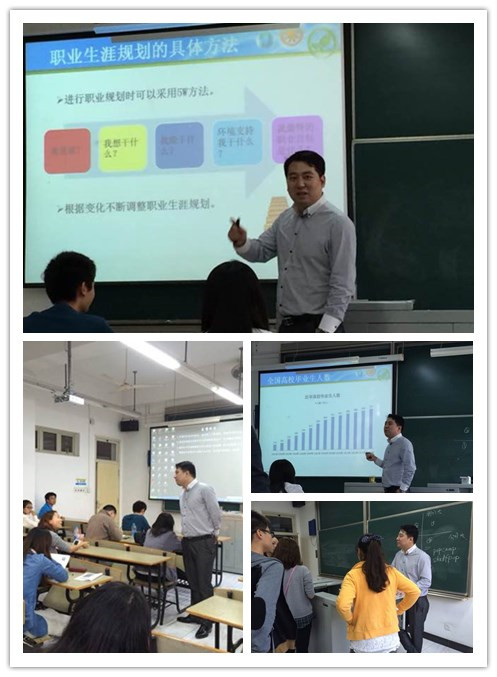 在讲座的开始,管先生就给在座的同学出了道题目,他问到性格、兴趣和能力这三个要素在职业选择中影响力的排名顺序,在得到同学们不同的回答后,管先生用他身边的一个例子向我们证明了性格是三者中对我们职业选择影响最大的因素。他为我们讲述了根据自己的性格兴趣来进行职业生涯规划的重要性,同时还为我们具体分析了近几年的就业形势以及将来的就业前景。