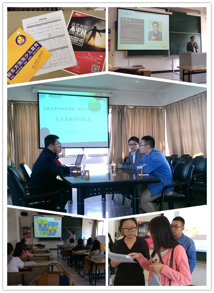 2012年,太阳成集团tyc33455与新东方上海学校校企联合,签约共建实习基地。两年来,外语学院一直和新东方保持良好的联系和互动交流,每年新东方上海学校都会来公司进行宣讲介绍,公司每年也都会有部分毕业生成功进入新东方上海学校任教或担任行政职务。10月17日下午,为了进一步深化公司和新东方的友好合作,双方续签了继续共建实习基地的协议。