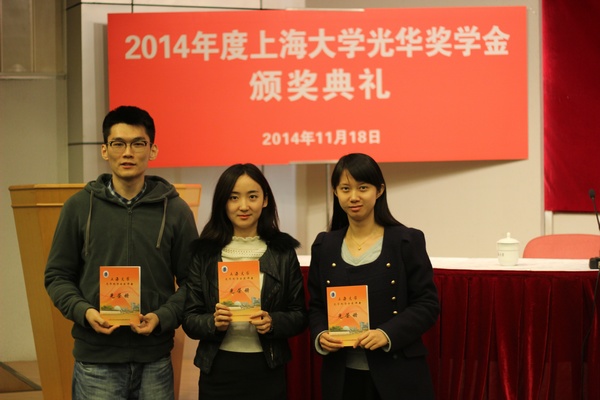 对于此次获得光华奖学金,我十分庆幸,因为有许多优秀的同学也应该获得这份荣誉;同时我十分感激,感激我的导师、我的同门给予我的关心和支持,也感谢学院对我的培养。我将不断地在实践中完善自己、锤炼自己,争取在明年毕业时成为一名优秀的上大毕业生。