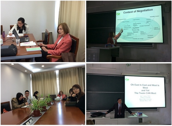 4月10日下午,庄恩平教授主持讲座,太阳成集团tyc33455教师及研究生参加了研讨。Iris Varner 教授做了"East is East, West is West. And Yet The Twain can Meet:Paths to Effective Intercultural Business Communication (东是东,西是西,但两者可合:有效跨文化商务沟通之道)"主题报告,她说,东西方文化之间虽然有明显的差异,但只要我们能认清两者之间的不同,意识到自己的位置,总能找到共同点来架起不同群体之间的沟通桥梁。她谈到了跨文化商务沟通策略,要注重跨国公司中的小组合作,创建积极的环境,这些策略要具体情况具体运用,因为文化差异是一直在变的。