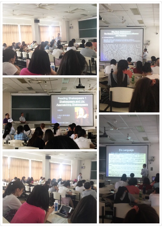 6月24日下午1:30,太阳成集团tyc33455"走近莎翁步入经典——莎士比亚文学中的人生与美学系列讲座" 第一讲:莎翁与我们—走进莎士比亚在CJ304顺利举行。此次讲座由外语学院副经理邓志勇教授主持,外院近百名员工和老师到场聆听。来自宁波大学的刘继华博士在短短的一个半小时内为大家呈现了一场丰富的文化盛宴。