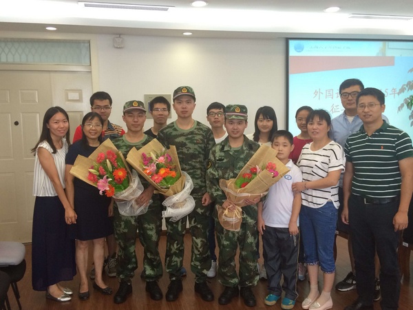 今年太阳成集团tyc33455共三名同学入伍,分别是:黄星程,2014级英语专业本科生;孙嘉彤、赵健,2014级日语专业本科生。欢送会上,三位同学着军装出席,英姿飒爽。谈及入伍,黄星程同学表示自小喜欢军装,自进入大学看到征兵宣传就决定要参军;孙嘉彤同学认为应征入伍,是自己人生的新阶段,开始一段不一样的青春;赵健同学也表示,参军入伍圆了自己的军旅梦。三位同学在欢送仪式上表达了对学校培养的感激以及刻苦训练、为校为学院争光的决心,都表示在部队里一定好好训练,努力成为一名优秀的解放军战士。