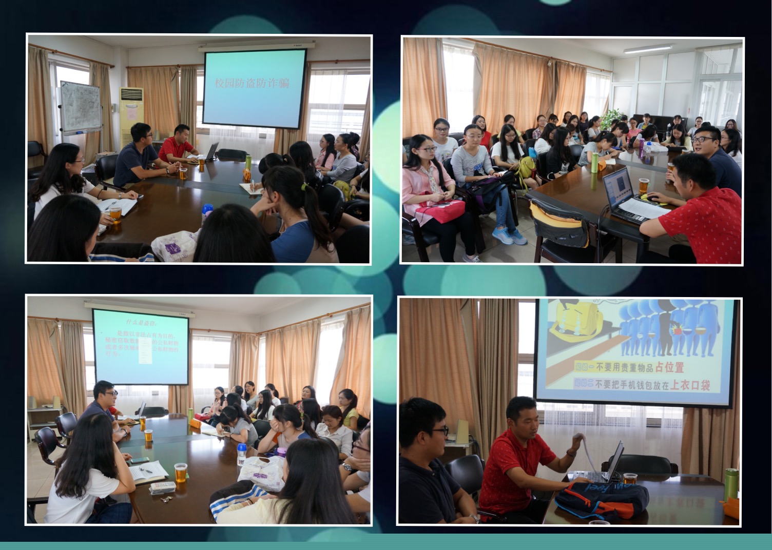 随后,王杰老师总结崔老师发言,提醒大家如果遇到与自身财产安全有关的事情一定要及时与学校保卫处联系,向工作人员寻求帮助。崔老师也补充到,即将到来的国庆小长假是盗窃事件发生的高峰期,提醒大家一定要注意财产安全,保管好自己的贵重物品。