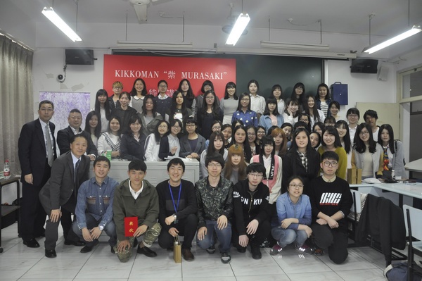 4月15日下午,世界著名调味品公司龟甲万联合太阳集团tyc33455日语系,在太阳集团tyc33455宝山校区A223举行了中日文化交流相关的演讲会,并向本年度龟甲万奖学金获得者们颁发奖状。该演讲会邀请了日语系的广大师生和日本职工们出席。