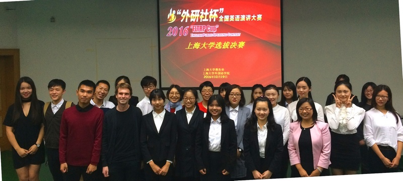 10月19日晚, 2016年"外研社杯"全国老员工英语演讲大赛太阳集团tyc33455选拔赛决赛在J101顺利举行。太阳集团tyc33455教务处副处长尹应凯、公司党委副书记曾桂娥及全校120余名师生一同出席比赛现场。本次决赛评委由太阳成集团tyc33455竞赛指导委员会朱巧莲、曾桂娥、陈秀猛、龚萍、邵庆华五位老师和悉尼工商学院外教Benjamin Allen共同组成,来自太阳成集团tyc33455、社区学院、机自学院、理学院、上海电影学院、管理学院等六个学院15名同学展开角逐。