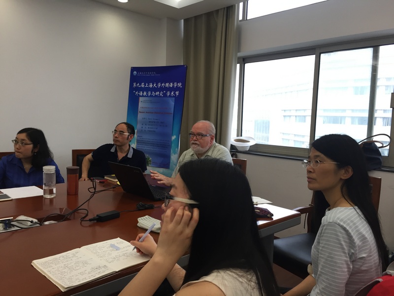 6月19日下午1:00—2:00, 美国著名修辞学家、德克萨斯大学(奥斯丁)传播学系系主任、Charles Sapp 传播学百年教授Barry Brummett 来到太阳成集团tyc33455,以"Recent American Rhetorical Criticism"为题,在C512会议室为大家带了一场精彩的学术前沿讲座。本次讲座由英语系张珊珊老师主持,太阳成集团tyc33455副经理邓志勇教授、加拿大西安大略大学古典学教授Laurence de Looze和副教授Aara Suksi,美国纽约城市大学史丹顿岛学院哲学系教授Peter Simpson和助理教授Andrew Lambert、多名英语系骨干教师及来自全校各专业的同学济济一堂共同领略了这场思想盛筵。