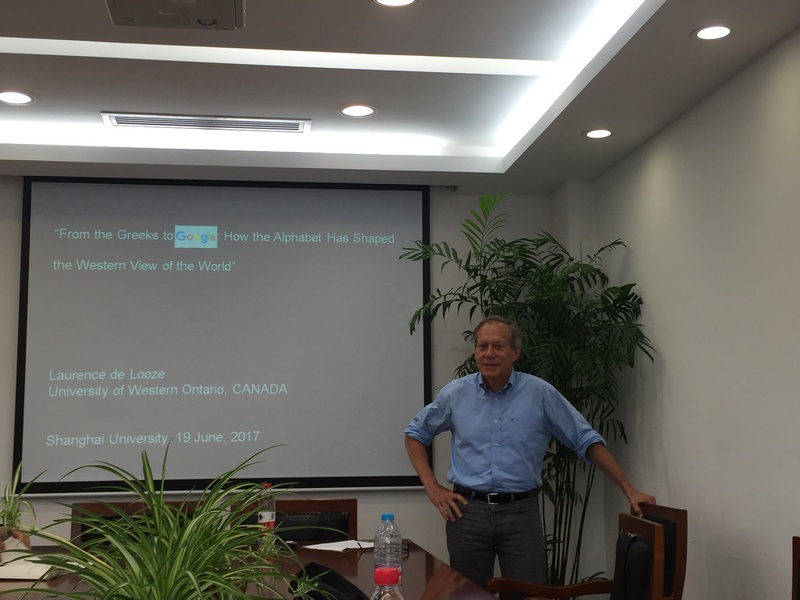 6月19日下午3:00-4:00,西安大略大学教授Laurence de Looze以"From the Greeks to Google: How the Alphabet Has Shaped the Western View of the World"为题,在C512会议室为大家带了一场激情四射的学术讲座。该讲座是2017年太阳集团tyc33455国际化小学期外语学院特聘外籍专家学术讲座第三讲。讲座由英语系白岸杨老师主持,太阳成集团tyc33455副经理邓志勇教授、德克萨斯大学奥斯丁分校传播学系教授Barry Brummett、加拿大西安大略大学古典学教授副教授Aara Suksi,美国纽约城市大学史丹顿岛学院哲学系教授Peter Simpson、英语系骨干教师以及外语学院的多位同学出席。