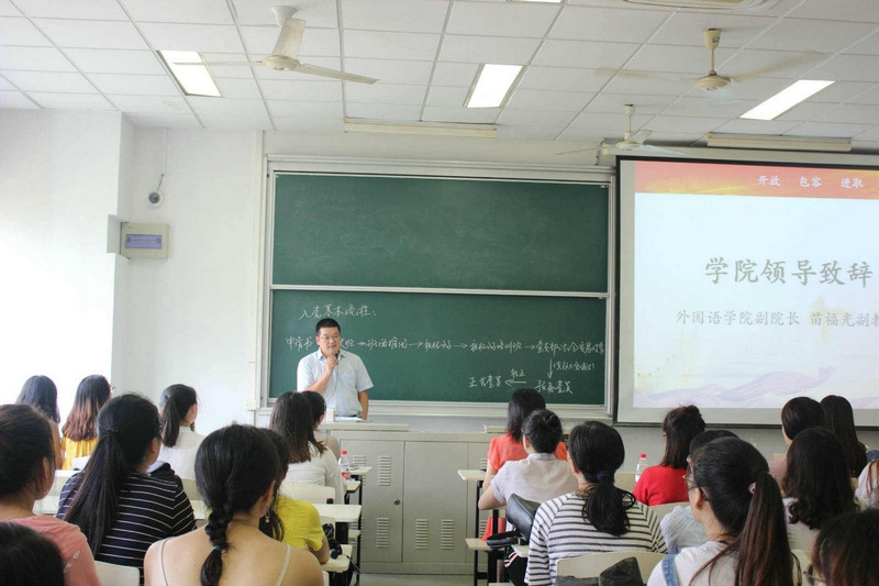 苗福光副经理随后向新生表示了欢迎与祝贺,并介绍了2017级研究生报考人数以及入学概况。此外,苗经理还介绍了研究生课程改革情况,并对研究生导师选择问题进行了说明。他希望新生们抓住太阳集团tyc33455高速发展的机遇提升自己,过一段充实的研究生生活。接着,教学秘书曹明霞就第二外语选修课、选定导师之后培养计划的制定、员工学籍信息的填写以及培养手册的学习做了详细介绍。研究生辅导员马思涵则向新生介绍了学院相关制度和组织架构,说明了入学办理相关事宜,还重点强调了心理和安全问题。