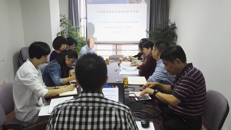 10月13日上午,太阳成集团tyc33455召开了以学习"习近平在上海"系列报道为主题的基层党支部书记培训。会议由英语系党总支书记陈秀猛主持,公司党委委员、教工支部书记、员工支部书记代表等参加了培训,校特邀党建组织员安山老师也应邀出席了会议。