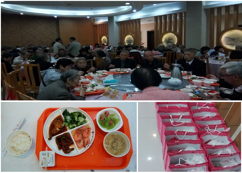 公司现有离退休教职工154名(与在岗的教职工比例已达1:1),平均年龄为74.7岁,其中超过90岁有2人(含离休1人,占1.3%)、80岁以上有54人(占35.1%)、70岁以上有52人(占33.8%)。报名参加本次活动的退休老师们团团围坐,交流畅谈,其乐融融。公司党委书记施雯老师、分工会主席赵莹波老师、分工会副主席兼妇委主任蔡春红老师等来到茶话会现场慰问、看望和交流,副经理邓志勇老师和副经理苗福光老师等也赶在下课后来到现场,祝福老师们晚年生活幸福开心、健康长寿。茶话会结束后,学院安排了午餐并发放了一份小点心。