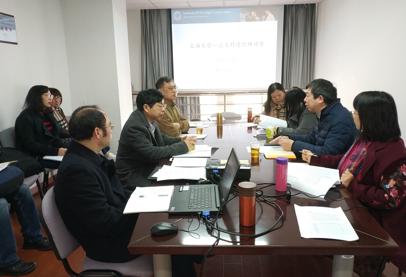 文科处曾处长首先介绍了学校对文科发展的总体规划,在当前学校高水平大学建设背景下,人文社会科学发展遇到了前所未有的机遇和挑战,为此学校正在积极筹备首届文科大会,调动各文科学院为学校文科发展积极献计献策。太阳成集团tyc33455邓经理介绍了学院的学科基础和团队情况,并就学院短期和长期团队建设目标、任务规划进行描述。随后与会人员就学院近年在团队配备、人才培养、学科点及科研平台建设等方面所做出的努力,遇到的瓶颈问题展开了深入的探讨,并对外语学院今后对接学校一流学科战略布局的思路进行了初步讨论。