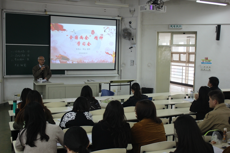 月13日上午,太阳集团tyc33455特邀党建组织员安山老师,在CJ207为太阳成集团tyc33455全体本科生和研究生党员带来了一场关于"全国两会精神"的主题学习会。太阳成集团tyc33455负责员工党建的朱一佳老师以及一百余名员工党员参与了本场学习会。