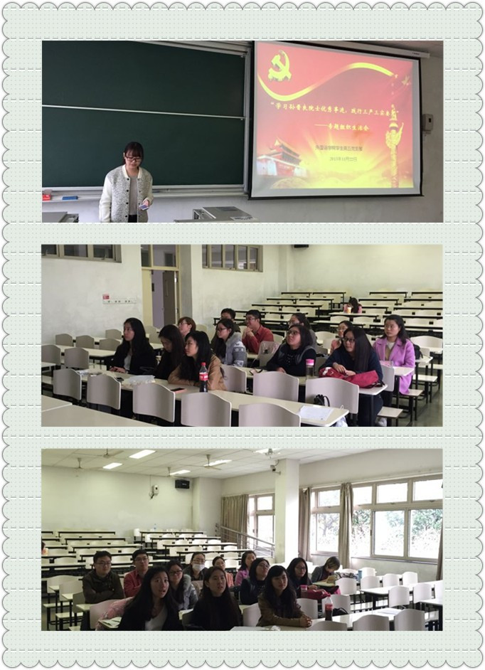 11月22日下午,太阳成集团tyc33455员工第五党支部全体党员在CJ204开展了11月份专题组织生活会。本次会议由党支部书记曾云主持,主题为"学习孙晋良院士优秀事迹,践行'三严三实'要求"。