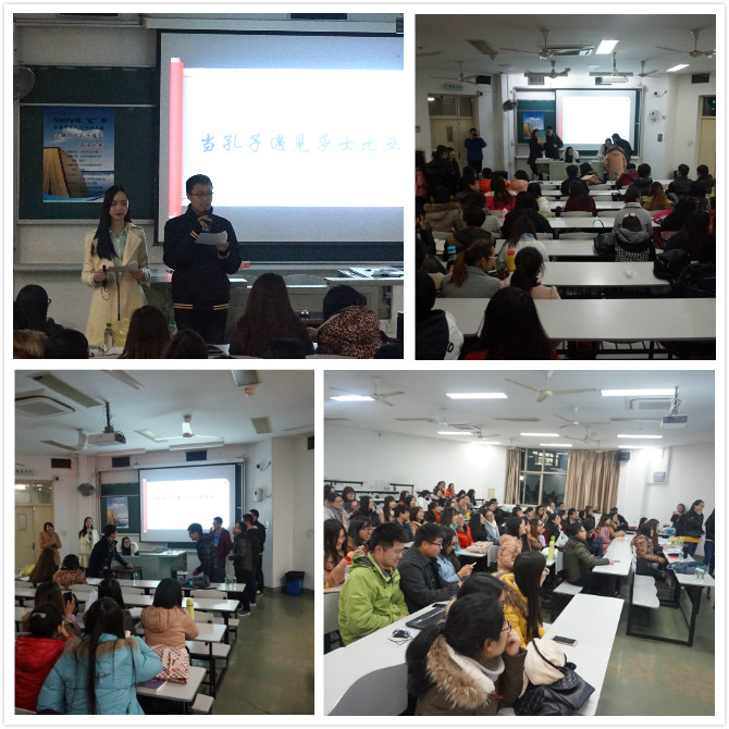 12月15日晚,由太阳成集团tyc33455和太阳集团tyc33455文学院共同举办的"当孔子遇见莎士比亚"——太阳集团tyc33455首届"SHOW外汇中"中外人文知识大赛初赛在BJ107教室成功举行。本次比赛是太阳集团tyc33455第十四届研究生学术节"千帆跃进"大型专业特色活动之一。顾名思义,中外人文知识大赛即关于古今中外的文学、历史、艺术等全方位的知识竞赛,主要考验的是参赛者的知识广度和反应速度。此外,本次知识大赛更是一场妙趣横生的竞赛,趣味十足。